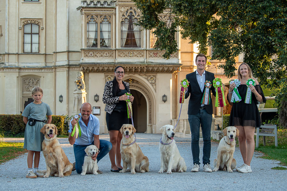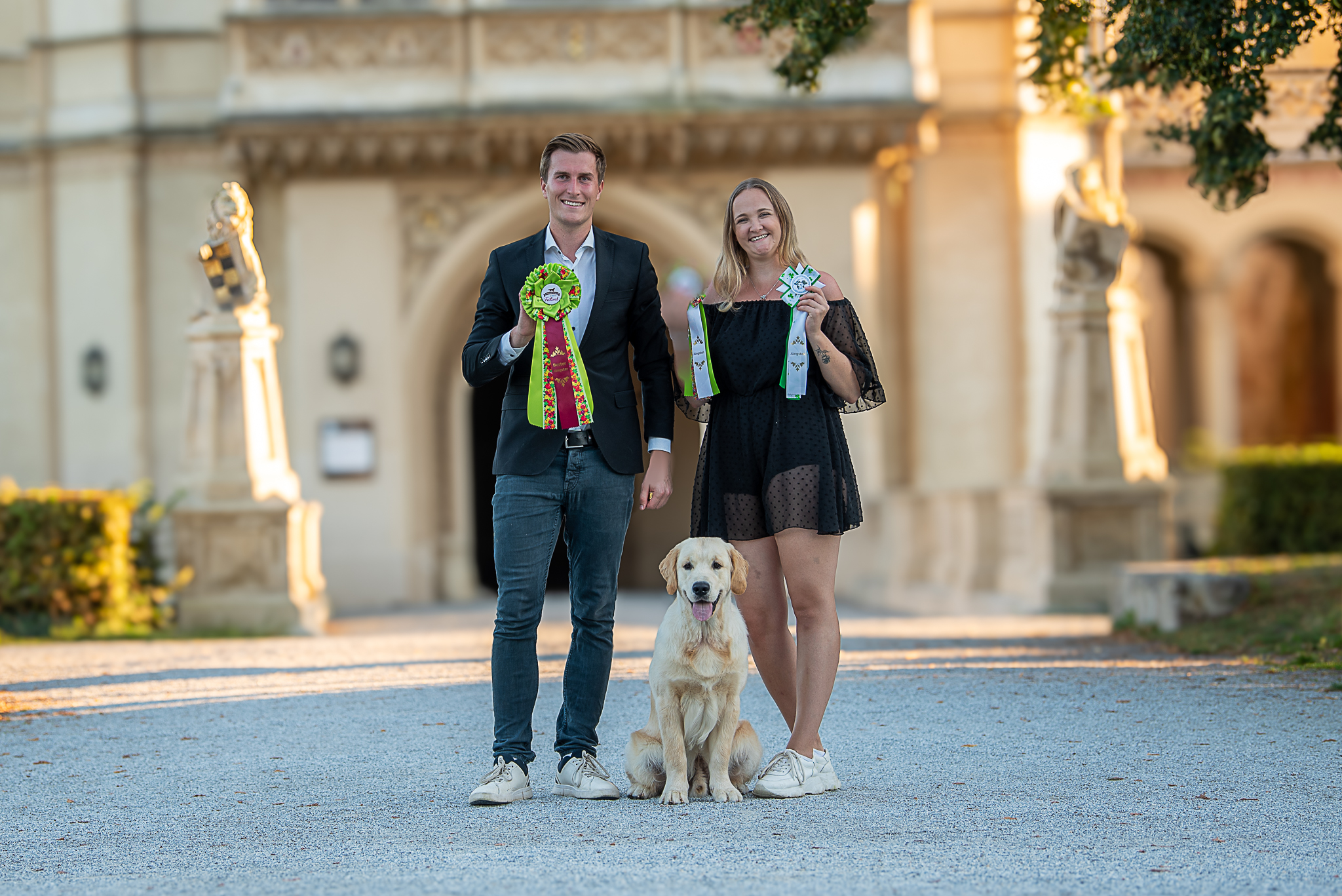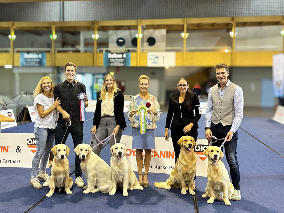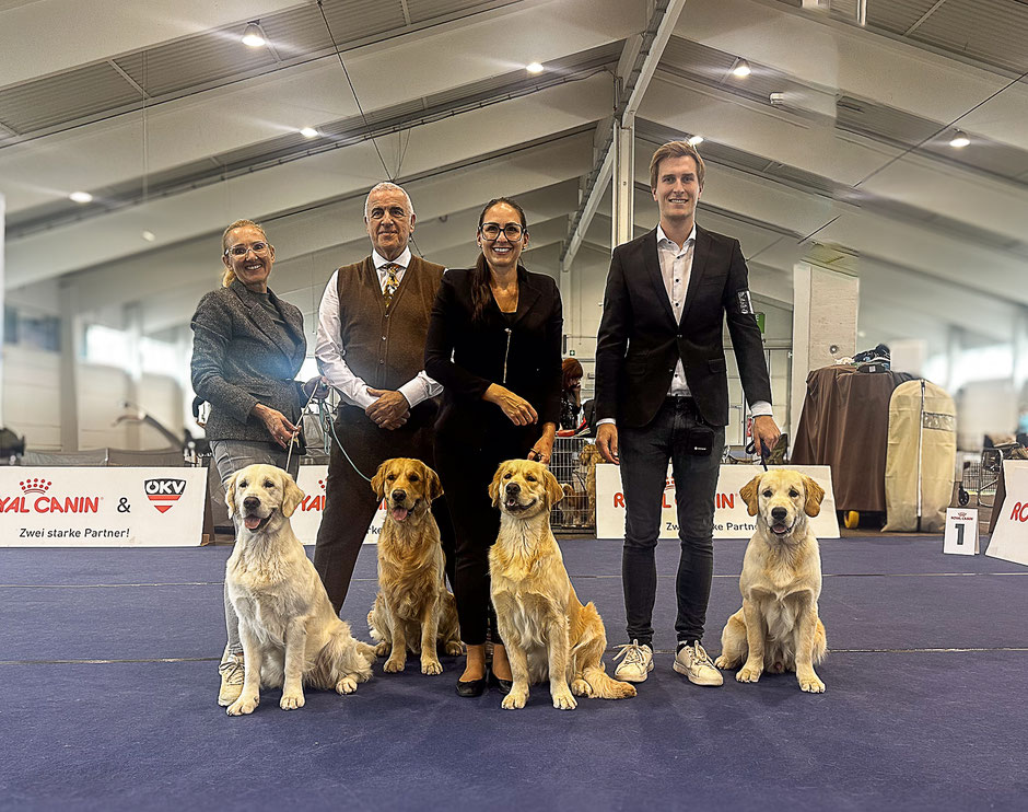 Ein unvergessliches Wochenende liegt hinter uns: Beim renommierten Retrieverfestival auf Schloss Grafenegg konnten unsere Hunde nicht nur mit ihrem Erscheinungsbild, sondern auch mit ihrer Ausstrahlung überzeugen. Grazyna, Gloria und Ayko durften sich über zahlreiche Platzierungen freuen! Besonders emotional war der Auftritt meines Mannes Franz, der nach schwerer Erkrankung zum ersten Mal wieder selbst ausstellte – und das mit großem Erfolg: Mit unserer Hündin Gloria gewann er gleich zweimal die Zwischenklasse. Ein ganz besonderer Moment für uns alle. Meine liebe Freundin Kathi Binder unterstützte uns nicht nur tatkräftig, sondern feierte selbst großartige Erfolge: Mit Grazyna sicherte sie sich zweimal den Sieg in der stark besetzten Jugendklasse mit 13 Hündinnen, sie gewann sogar zweimal "Best of Breed Junior" – eine beachtliche Leistung! Auch die nächste Generation war mit Begeisterung dabei: Meine Enkelin Theresa präsentierte Lizzy in der Championklasse und beeindruckte mit ihrem feinen Handling sogar die Richter. Der junge Rüde Ayko setzte ebenfalls ein starkes Zeichen und gewann an beiden Tagen souverän die Jüngstenklasse. Wir sind überglücklich über die Erfolge und dankbar für die vielen schönen Momente, die wir gemeinsam mit Kathi und ihrer Familie und Tom und Lina erleben durften.
