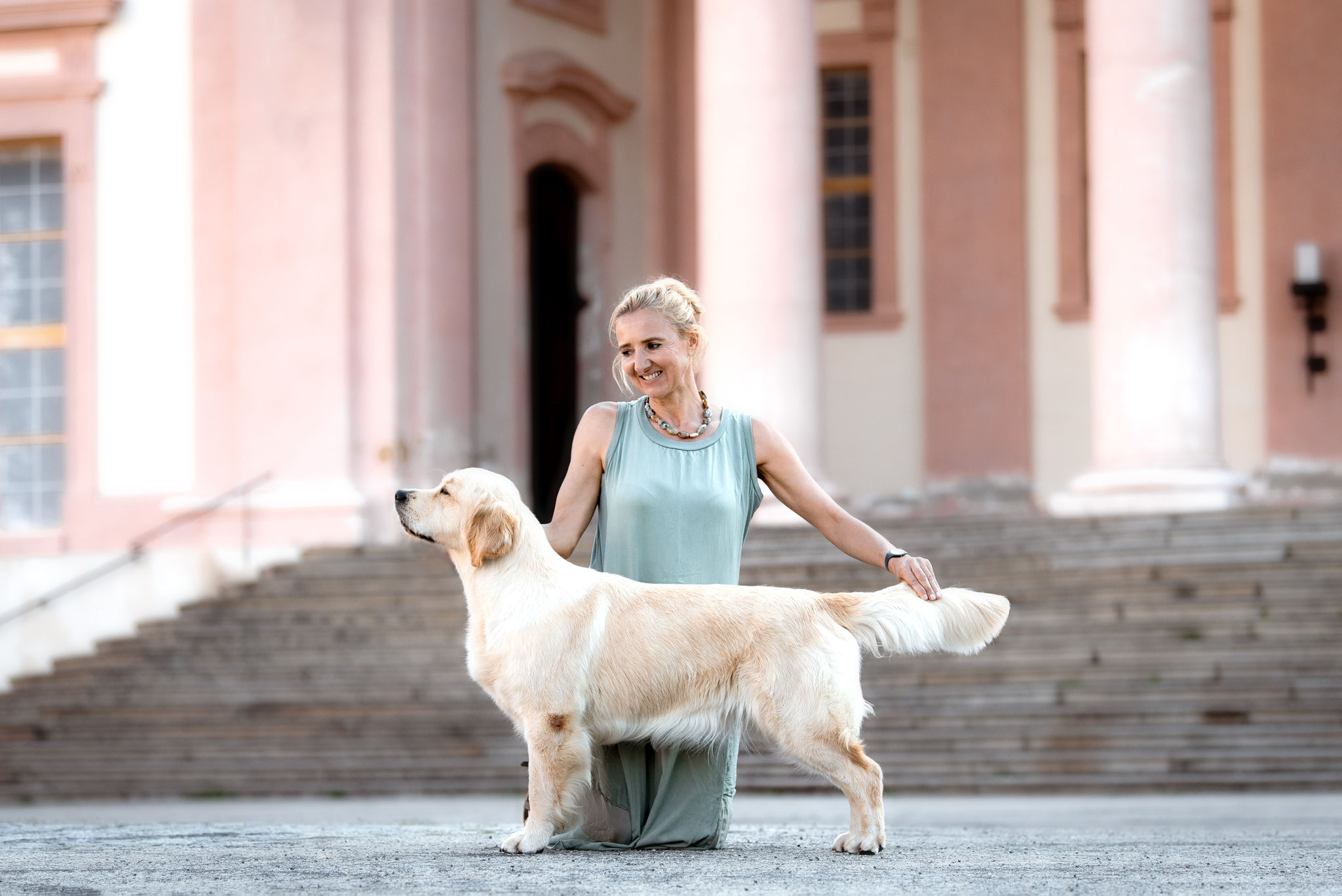 Unsere LIZZY ist aus Ylvis erstem Wurf. Schon bei der Aufzucht der Welpen fiel sie uns durch ihr besonders schönes Gebäude und ihre fröhliche aufgeweckte Art auf. Unsere ausgesprochen sanfte und aufmerksame Lizzy hat sich zu einer wunderschönen Hündin entwickelt, das bestätigen die Ergebnisse bei den Ausstellungen im In- und Ausland. Lizzy glänzt im Showring und auch zuhause macht sie uns viel Freude. Sie ist ausgesprochen leichtführig und sehr folgsam und in der Familie mit Kindern einfach ein Traum. Lizzy ist einfach ein Geschenk vom Himmel - mit ihr haben wir unser Zuchtziel erfüllt.
